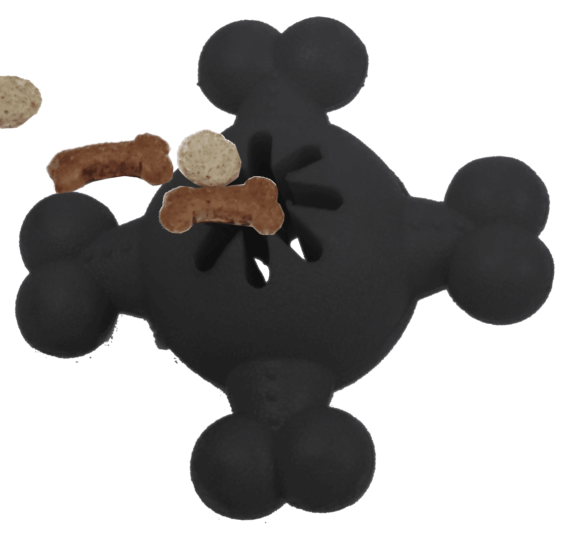 2.Features a centered socket with ridges for placement of Dog Treats that release when chewed on
